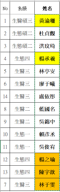 114-1「服務學習助學金」獲獎名單 :