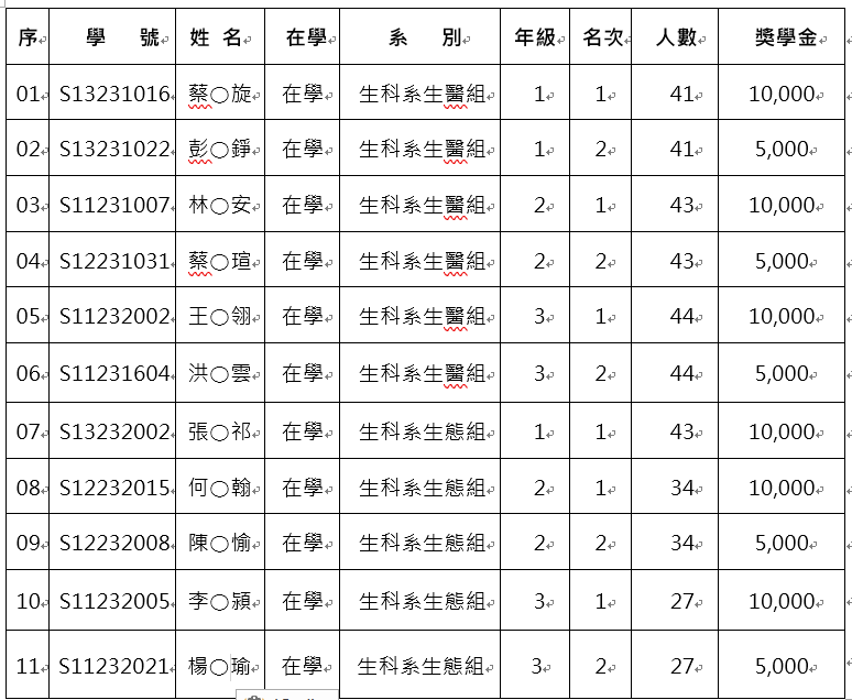 公告本校113學年度書卷獎獲獎名單。
